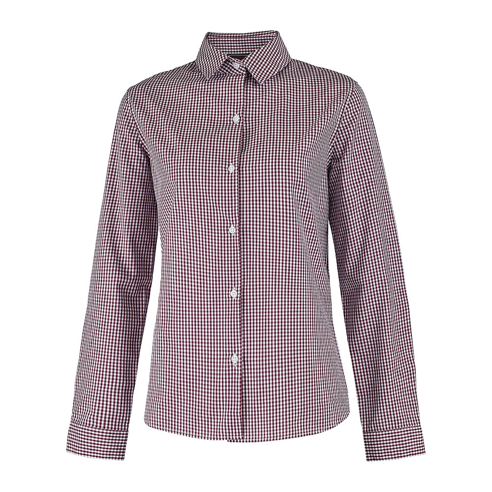 Verleihen Sie mit dieser Vichykaro-Bluse Ihrem Business-Outfit einen Hauch von Retro-Chic. Sie