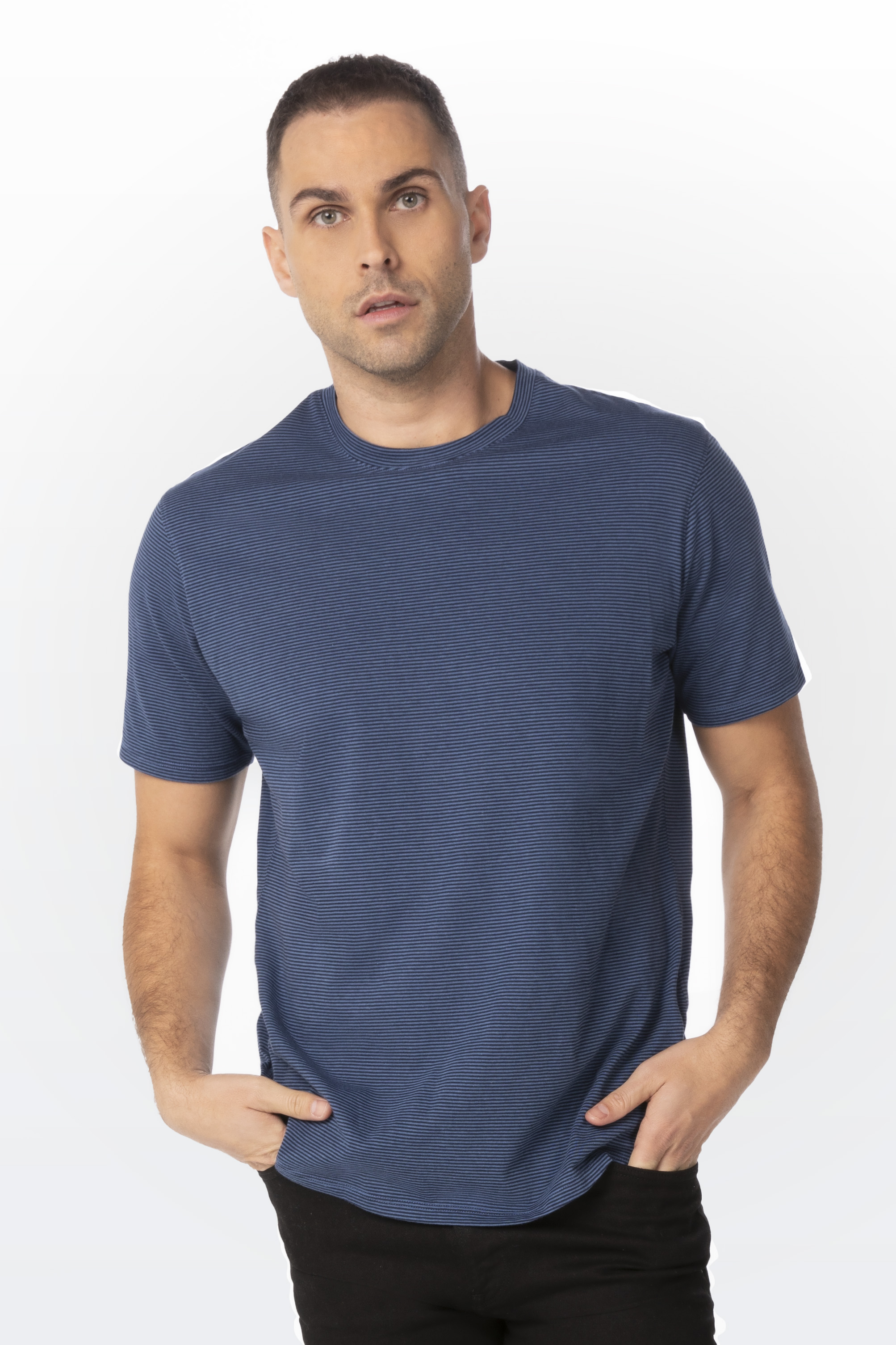 Strapazierfähiges T-Shirt aus leichter Schnittware. Halsausschnitt mit vierfachem Rippabschluss, Nacken- und Schulterband und Nackenspiegel. Vorgeschrumpft bei sehr hohen Temperaturen, sowohl vor als auch nach dem Färben, um zusätzliche Stabilität und lange Lebensdauer zu gewährleisten.Nachhaltigkeit: