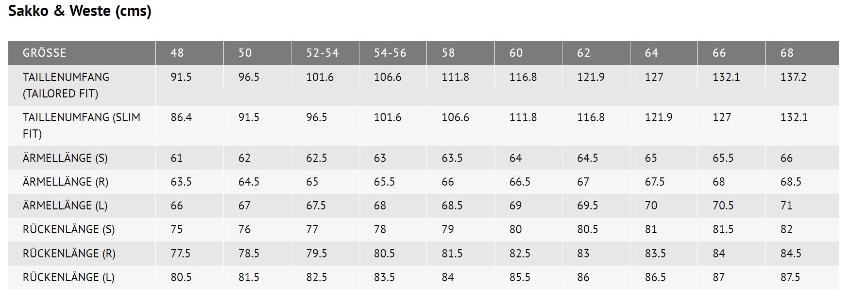 - Rückenlange bei Größe 50R = 76 cm